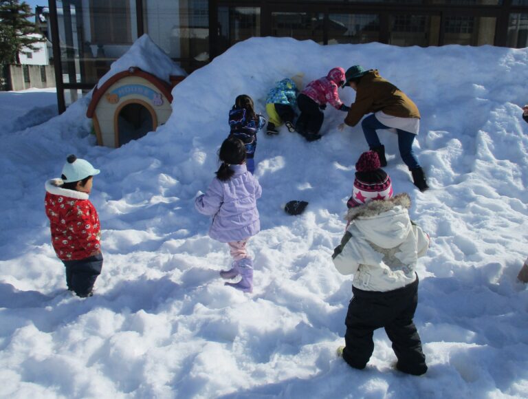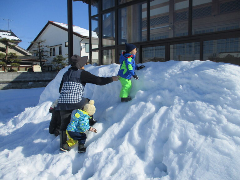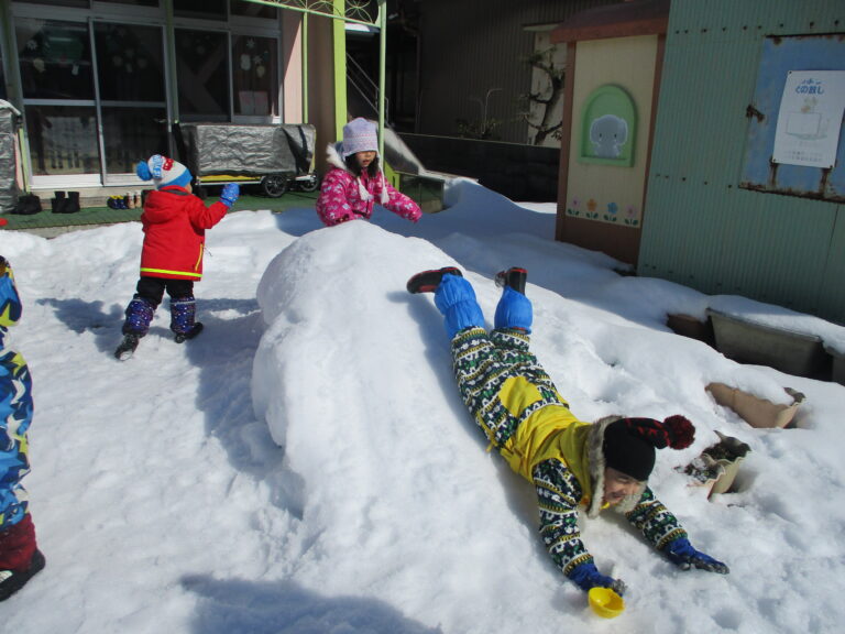 そんなぞう・くまぐみさんも雪山の滑り台で遊んだりかまくらをアレンジしたりして遊びました。