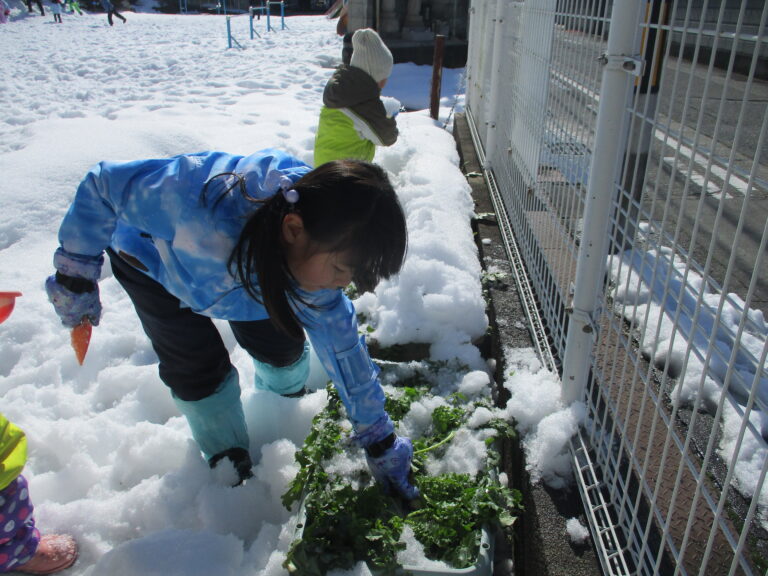 ぞうぐみ・くまぐみも雪遊び!スキーウェアを着るところまでは順調なのですが、長靴カバーで大苦戦。長靴カバーを長靴に付ける作業を先生に手伝ってもらいながらやってみました。試行錯誤しながらも自分でカバーをつけることができた年長さんは「できた~っ!!」と嬉しそう。これも「自分で挑戦する」だなぁと思いながら見守っていました。
