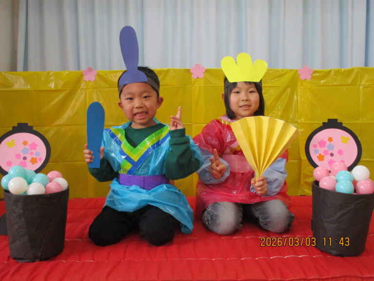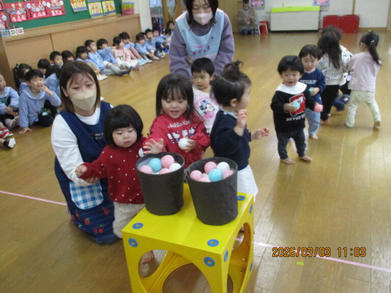 今日は3月3日 ひなまつりですね~ 3月生まれのお友達のお楽しみ会とひなまつり会をしましたよ~