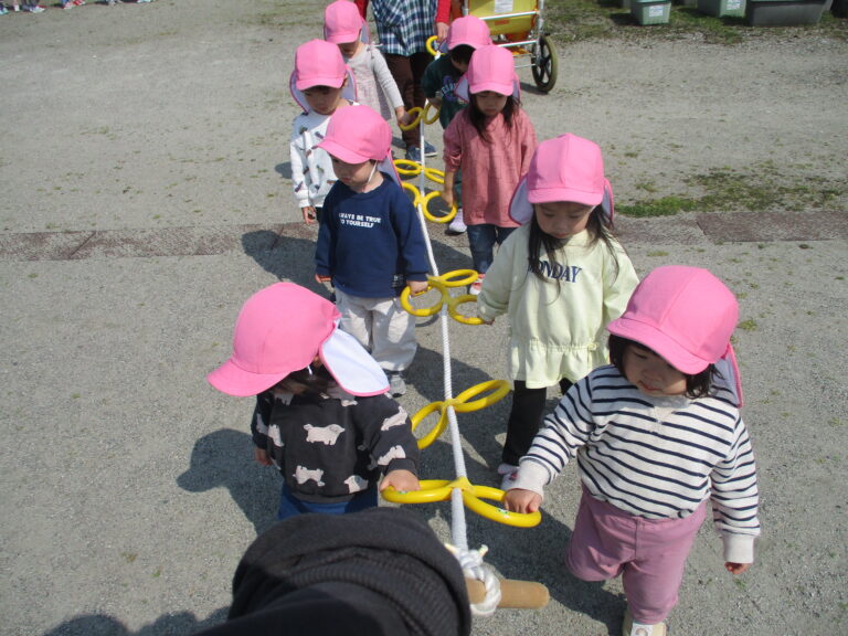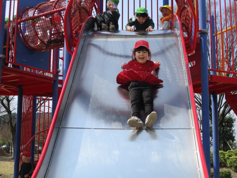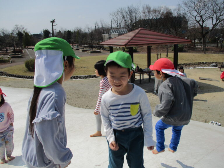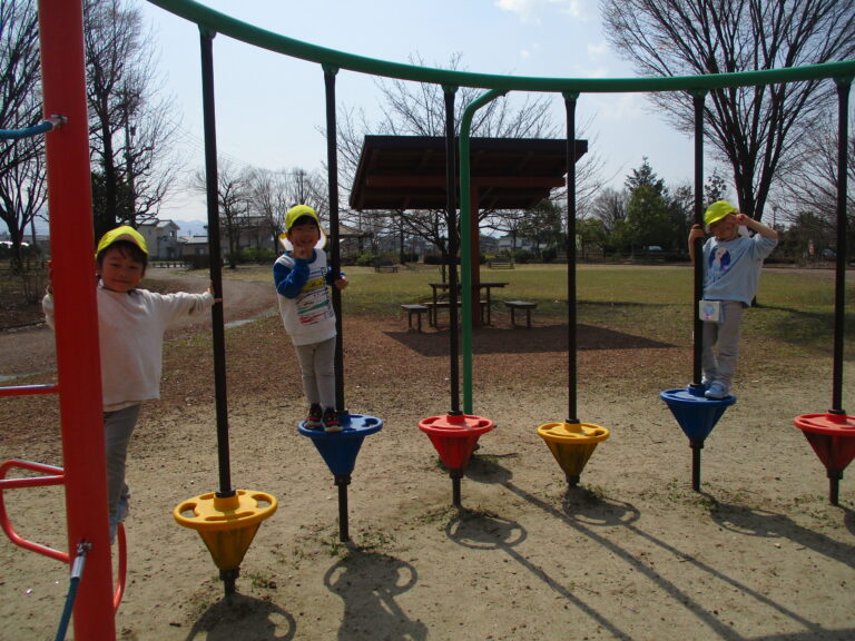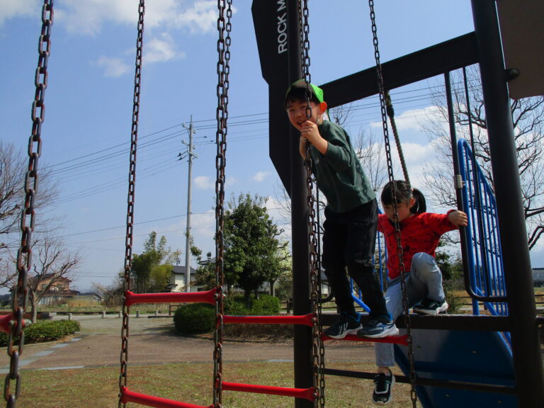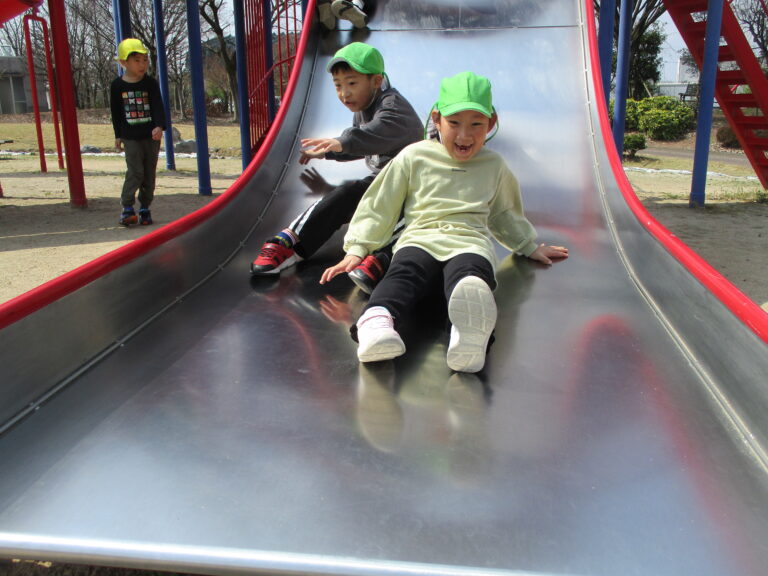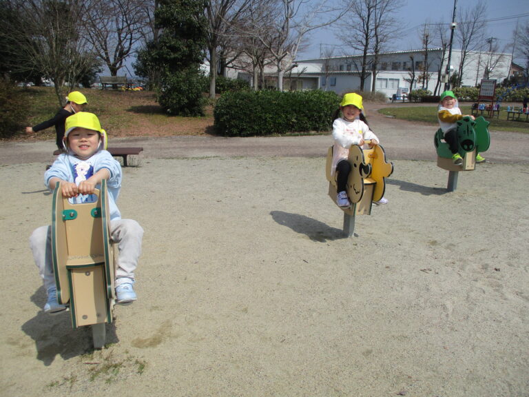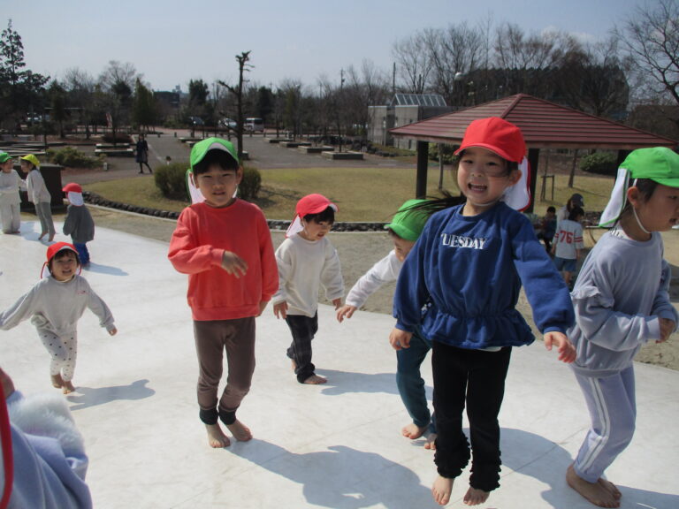 いよいよ令和7年度も最後の2日間!いろんな思い出作りをしましょう。ということで、くま・ぞう組さん達は「あさひの郷公園」へ、ひよこ・うさぎ組さん達は「りす公園」へお散歩に行ってきました。