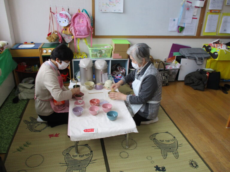 裏では、先生たちが子ども達のお茶を立ててくださっています。