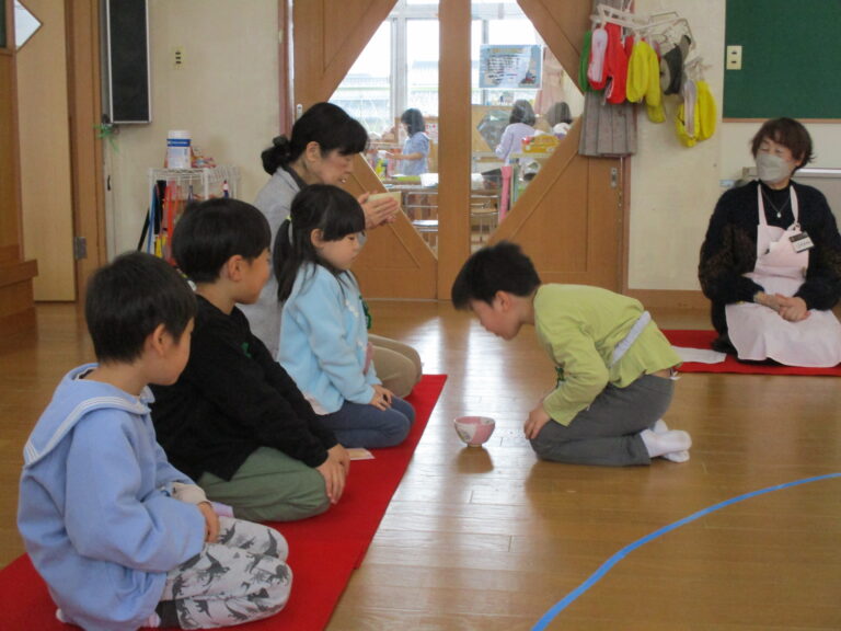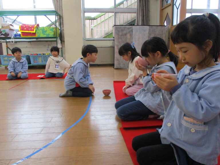年長さんの茶道教室も今回が最後の練習でした。作法もかなり身についてきて、来月にある年長児保護者をお招きしての「お茶会」が今から楽しみです。