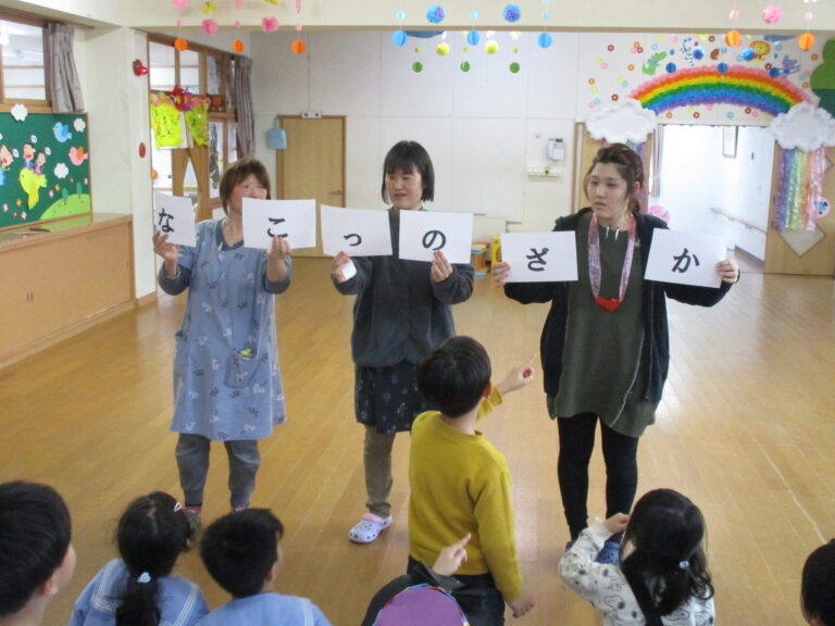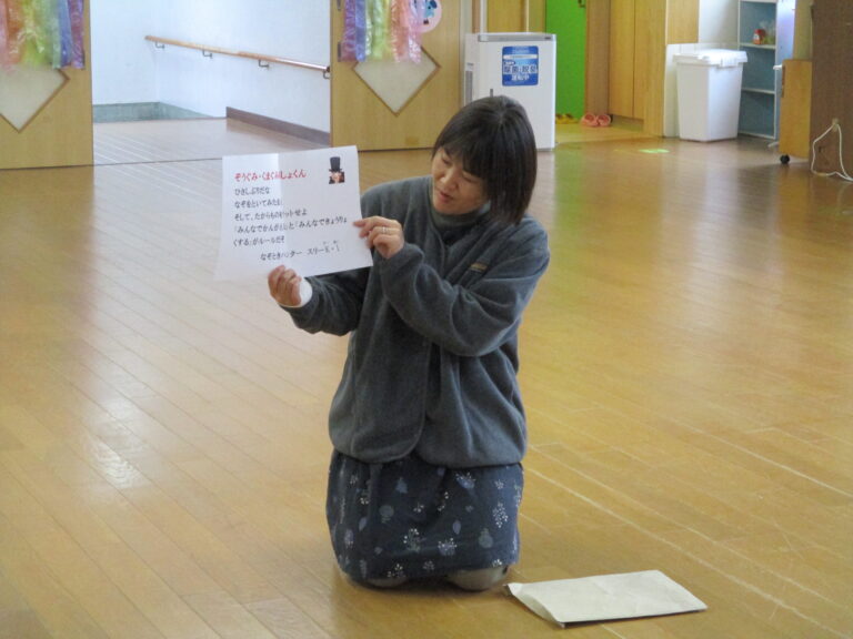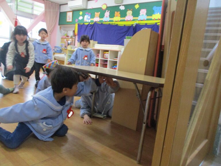 青チームは保育園の中にポケモンが隠されていると考えて探し始めましたよ。