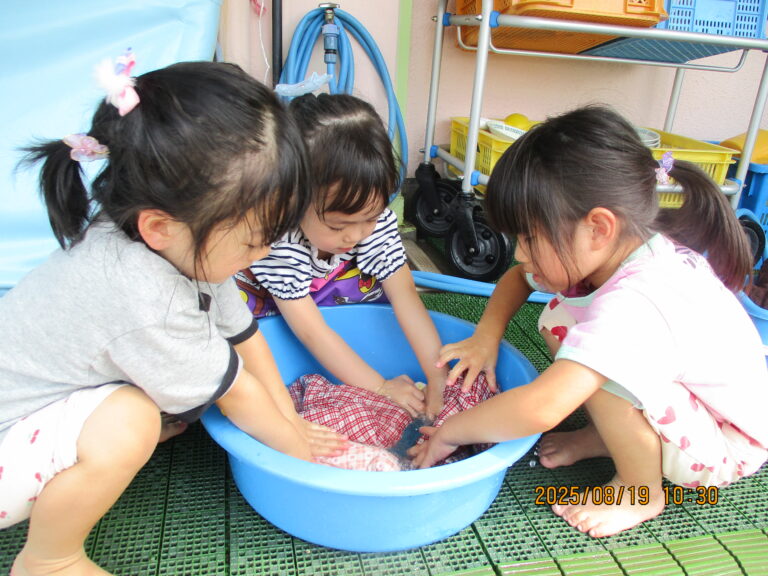 茶道教室(年長児)&洗濯遊び(年中児)&ロケット工作(年少児)