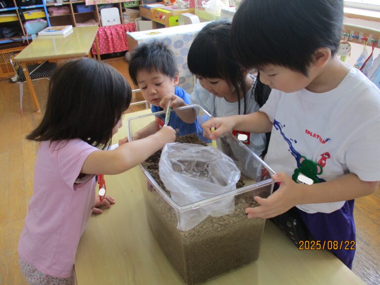 部屋で遊んでいるお友達も撮ってみましたよ。年齢分け隔てなく一緒に遊んでいるところが「縦割り保育」のメリットですよね。