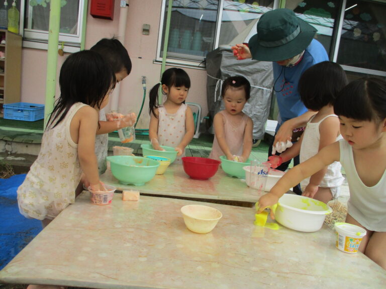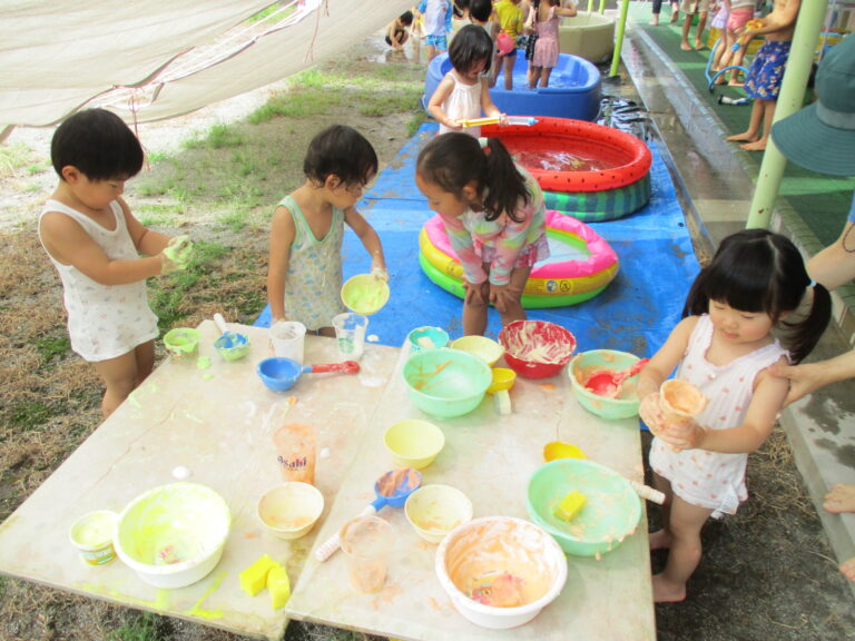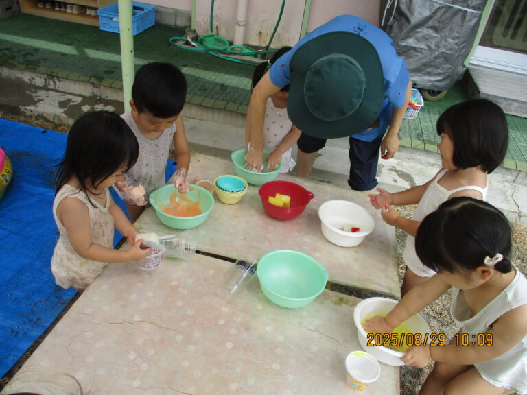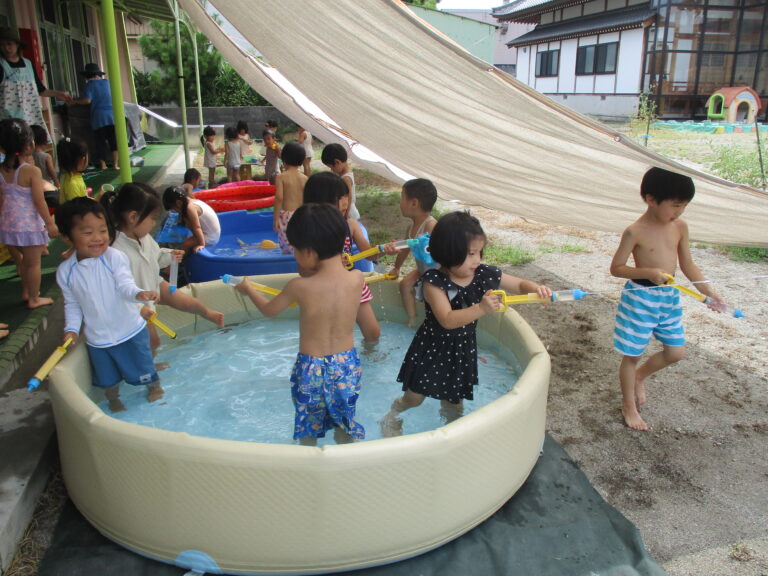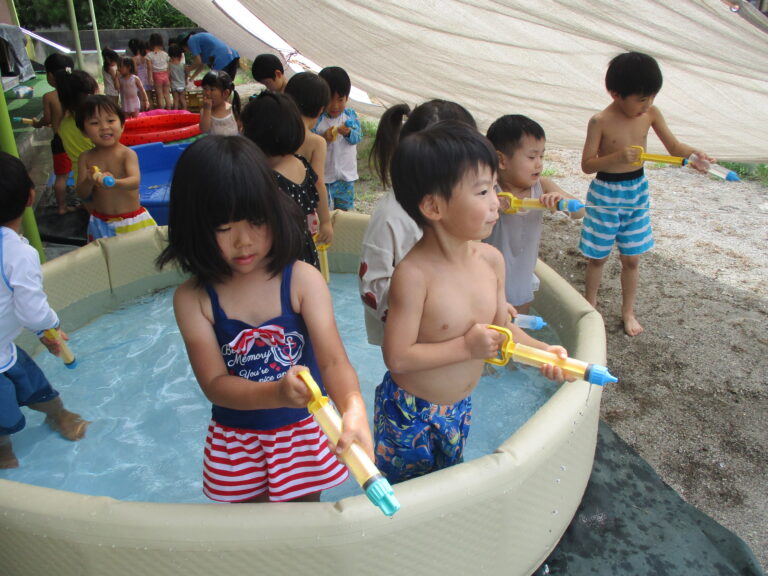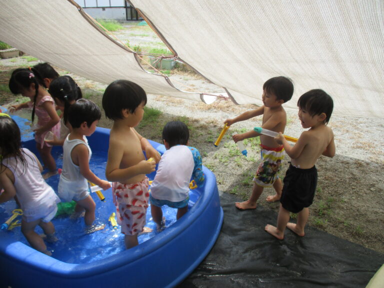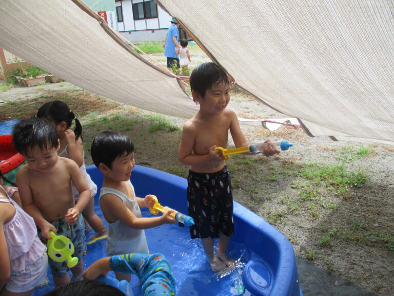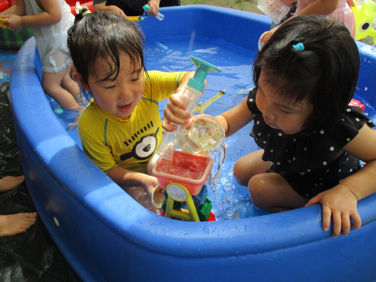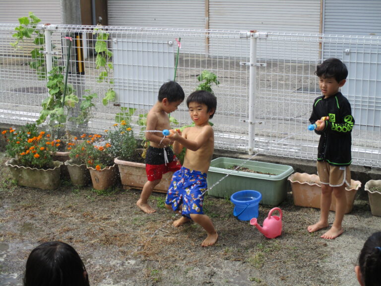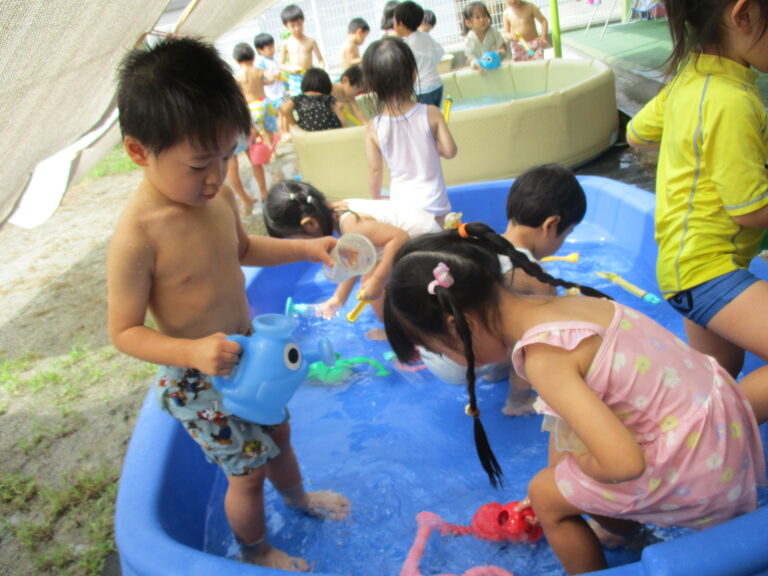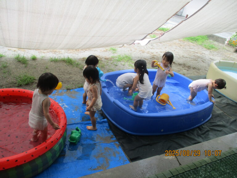 今日も暑い、という出だしの文章を何度書き出したことか。8月いっぱいで水遊びを終了するので、今日はラスト水遊び!!ということで、全クラス水遊びをしましたよ。最後を満喫するかのように思う存分に楽しみました。9月もまだまだ猛暑の日がありそうですが、これからは少しずつ、かけっこをしたり音楽に合わせて身体を動かしたり、と運動遊び・リズム遊びを行っていく予定です。
