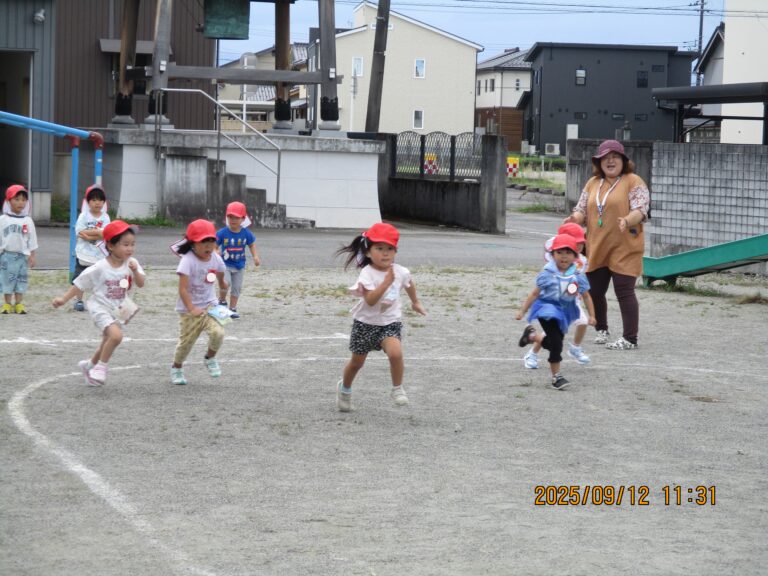 園庭でかけっこです。