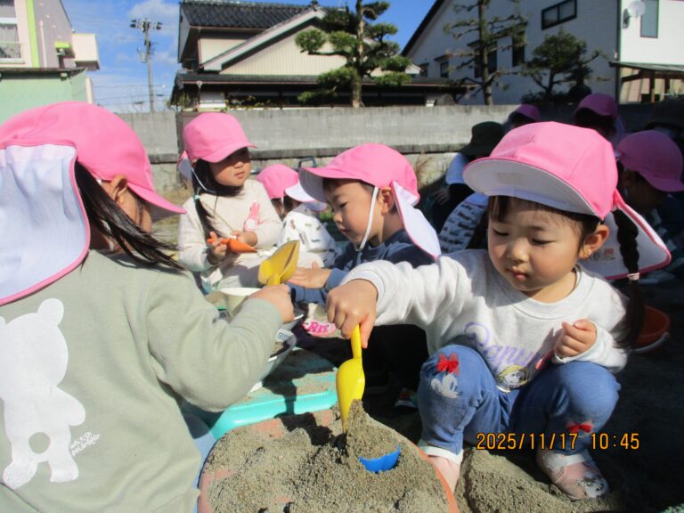 ひよこ・うさぎぐみさんは、園庭で砂遊びをしたよ