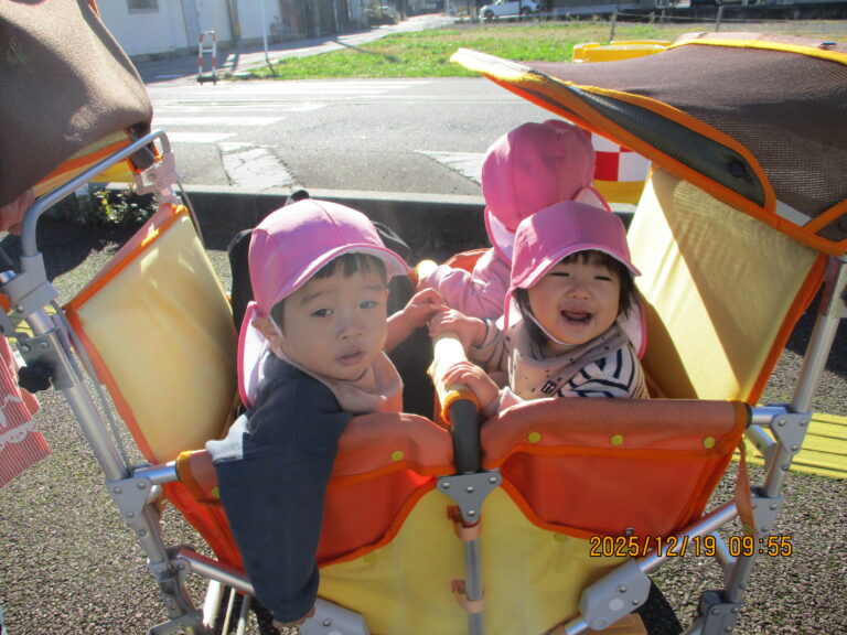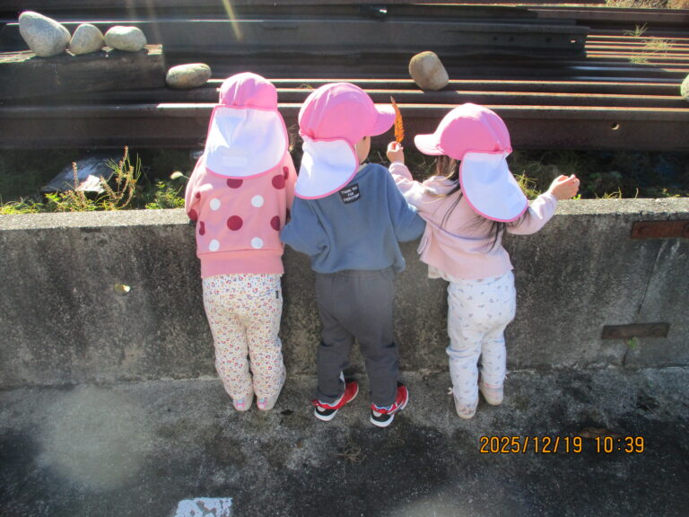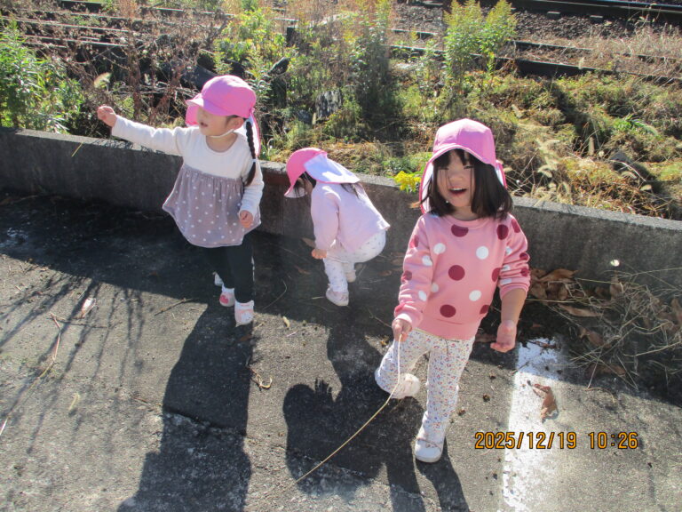 今日は雲1つ無い青空!おひさまがまぶしかったですね。剱岳もくっきり見えて気持ちがグッと上がりますね。こんな日はお散歩日和!と、ひよこ&うさぎぐみさんは上市駅までお散歩に行きましたよ。朝は冷え込んだけど、お散歩に行く頃にはポカポカ陽気。気持ちのいいお散歩となりました。駐車場では、電車を見たり葉っぱや虫を見つけたり走ってみたり・・・と思い思いに遊びました。