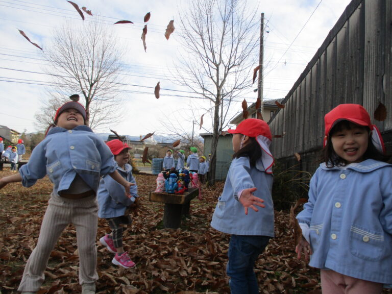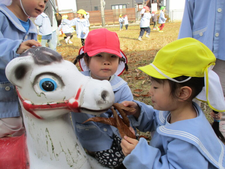 くま・ぞうぐみさんは、久しぶりのりす公園で落ち葉で遊んだり、ケイドロをしたりした後上市駅へ。そこで、うさぎぐみさんと合流して一緒に手をつないで帰ってきました。