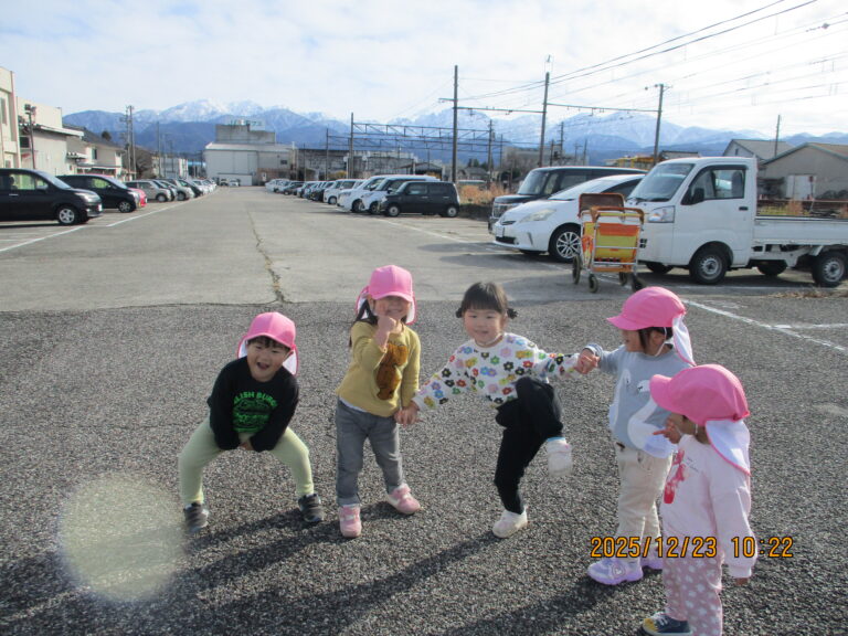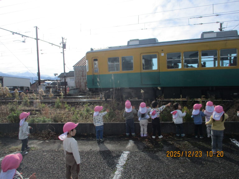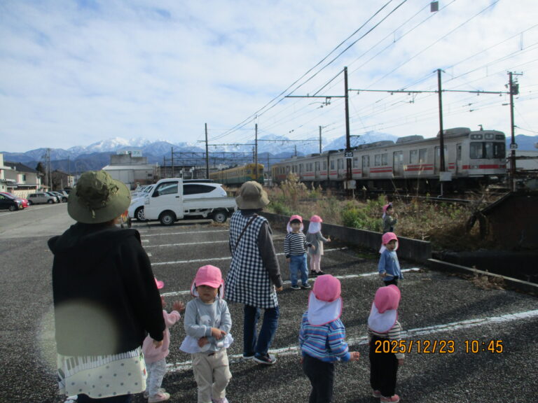 今週の週間天気予報は今日だけ晴れ!こんな貴重な晴れ間は戸外へ行かないと~!!ということで、ひよこ・うさぎぐみさんは上市駅へ、くま・ぞうぐみさんはりす公園→上市駅へお散歩に行きました。
