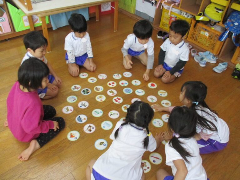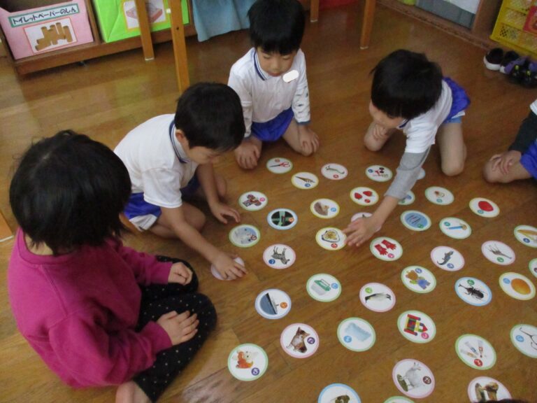 年長さんが体操教室の間に、年中さんはカルタ取りをしました。