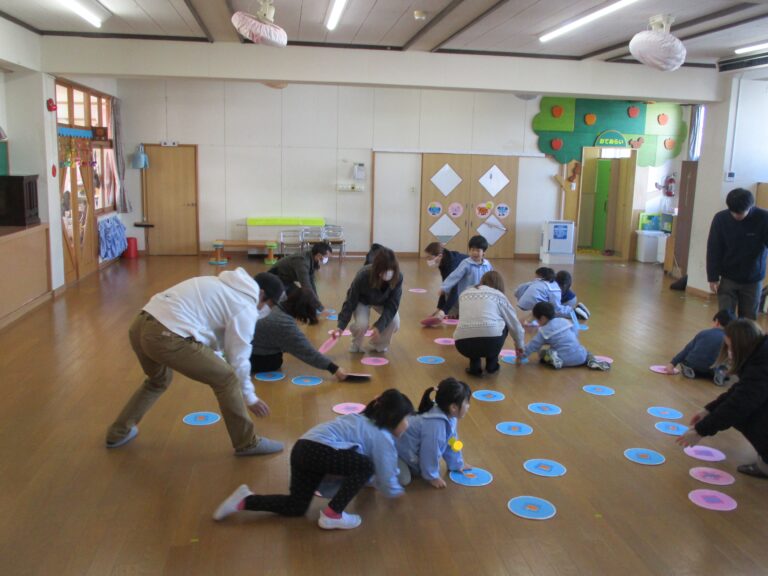 次のゲームはオセロゲームでぞうぐみvsくまぐみを2回行った後、最後に年中さんvs保護者で行いました。この勝負は子ども達の勝ちでした。