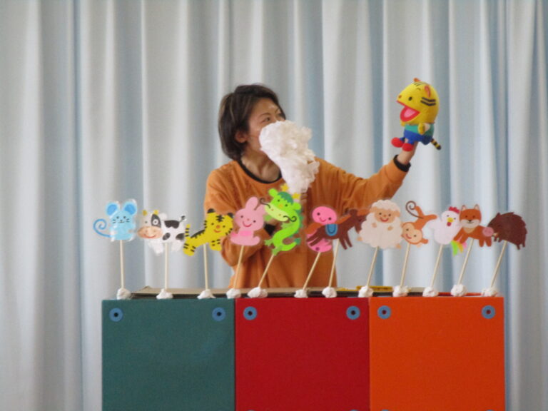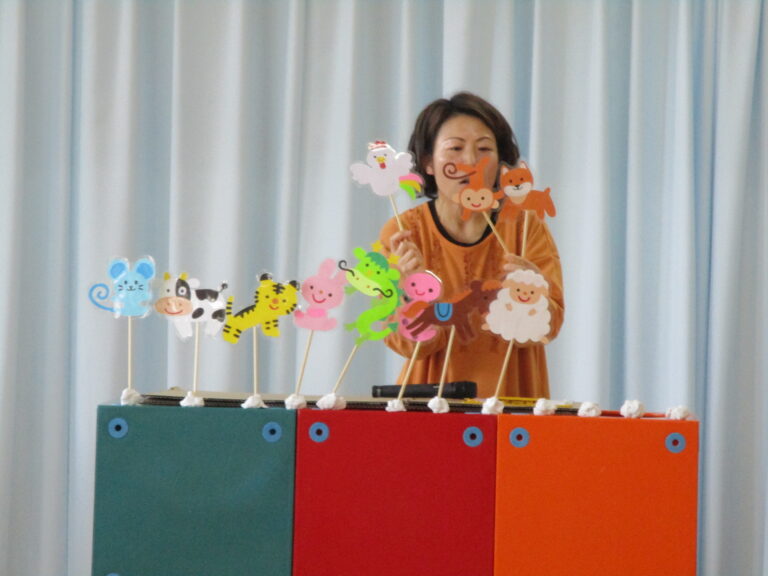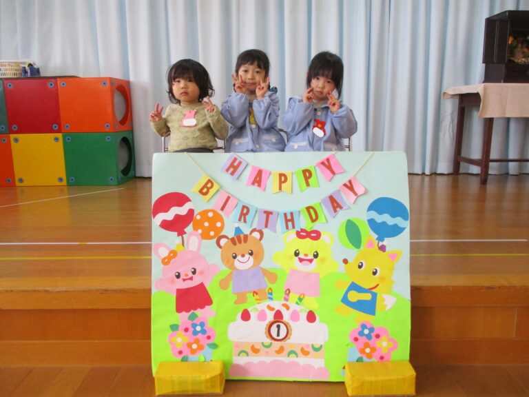 1月生まれのおともだちは3人で質問や歌をうたってお祝いをしました。次は先生によるペープサート「十二支のおはなし」でした。十二支って何か、そしてネコはなぜ十二支の中に入れなかったのかを知ることができ、1年の始めの月ならではお話でした。