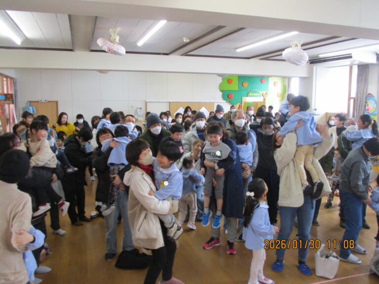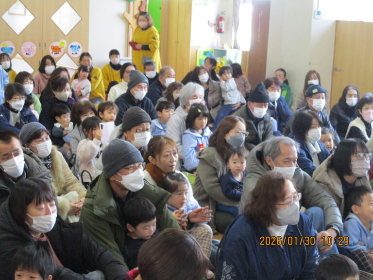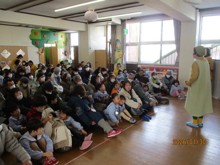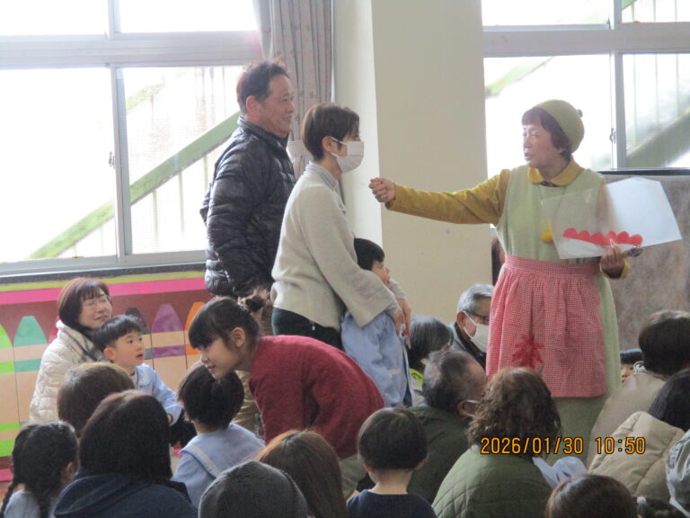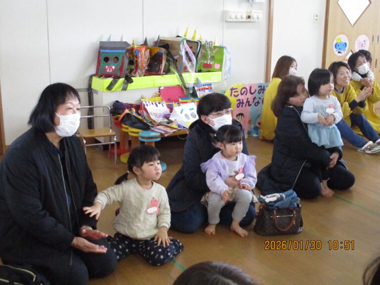 今日は祖父母参観日でした。数日前から「30日金曜日は再び大雪の恐れ」という聞きたくない予報が流れ、駐車場の心配や祖父母の皆さんが無事に到着できるか、ふれあい遊びを紹介してくださるゆきみだいふくさんが無事に来られるか、いろいろと心配になりましたが、参観前あたりからおひさままで顔を出すほどの良い天気になってきて、思わず空の神様に「ありがと~!!」と感謝をしました。