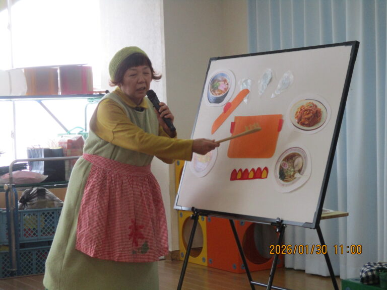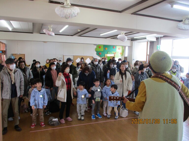 ゆきみだいふくさんは、おじいちゃん・おばあちゃん達が帰られた後も、子ども達に楽しい歌やお話をしてくださいましたよ。おじいちゃん・おばあちゃん達が帰ってしまって寂しくなっていた子ども達は、ゆきみだいふくさんの歌とトークで気持ちも回復!普段通りにその後を過ごす事ができました。